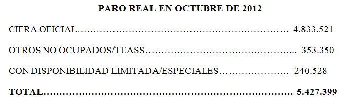 De este modo, el número real de parados -sumando ambos epígrafes- asciende a un total de 5.427.399, ocultándose así casi 594.000 parados que no se contabilizan como tales en el informe del Inem.
