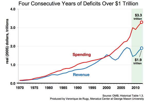 Obama criticó el sustancial aumento de deuda pública durante la presidencia de George W. Bush (4 billones de dólares extra), pero su gestión ha superado a su antecesor.