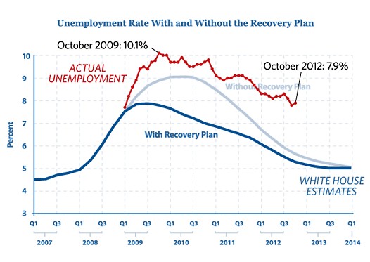 Al actual ritmo de creación de puestos de trabajo (171.000 en octubre), no alcanzaría el pleno empleo hasta 2017. El paro actual del 7,9% está muy alejado de las previsiones de Obama, cuyo gabinete prometió una reducción drástica de este indicador como consecuencia de sus planes de gasto público.