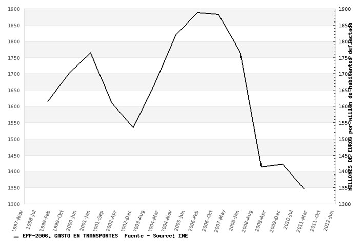 El gasto en transportes también se ha hundido (reflejo del menor uso del automóvil, transporte vacacional y transporte al lugar de trabajo), reduciéndose un 29% respecto a 2007 y un 15,7% desde 1998.