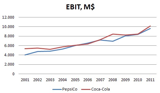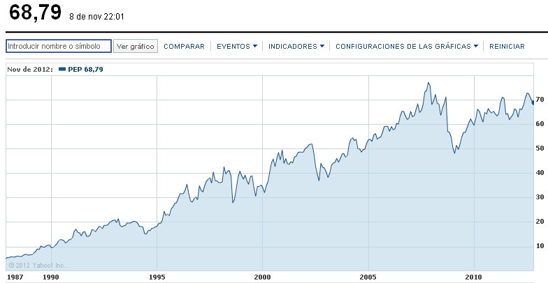 El ascenso de Pepsi ha sido más prolongado en el tiempo y su revalorización ligeramente menor. Desde 1990 hasta principios de 2008, las acciones multiplicaron su valor por 7,6.