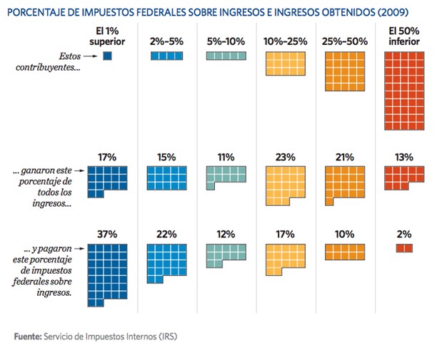 Curiosamente, Krugman omite en su comentario algunos datos realmente preocupantes del sistema tributario estadounidense. Por ejemplo, el Premio Nobel cuenta a sus lectores que el porcentaje de estadounidenses que están exentos de pagar el Impuesto sobre la Renta ha pasado del 25% registrado en 1955 al 49,5% de 2009. Tampoco dice que el 10% más rico contribuye hoy siete de cada diez dólares recaudados por el Impuesto sobre la Renta.