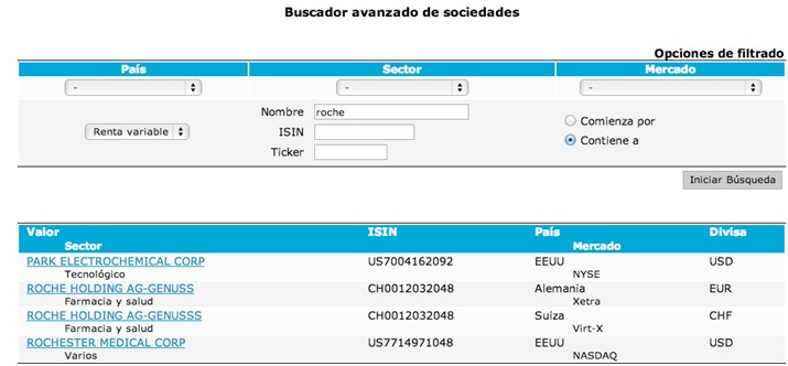 Le quito la duda: sí, decidí comprar. Y una vez tomada la decisión, sólo era cuestión de darle instrucciones al bróker. Tecleé la palabra Roche en el buscador de la plataforma electrónica y me apareció una pantalla como ésta: