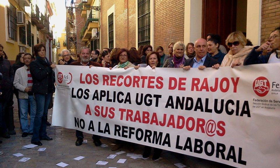 El representante de los curritos o trabajadores de base del sindicato, como lo llama ABC, entre los que no se incluyen los dirigentes, se queja de que la su "patronal", o sea, la comisión ejecutiva regional del sindicato, "esté olvidando los principios de la organización" a la hora de aplicar reestructuraciones entre sus empleados por motivos económicos. "Te aplican lo más duro de la reforma laboral como si se tratase de la patronal más casposa de España", afirma el citado portavoz, que este martes se manifestó junto a decenas de empleados de la central sindical en la Calle Salado de Sevilla, a las puertas de la sede regional de UGT.