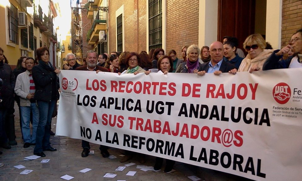 Se veía venir y así fue anunciado en Libertad Digital. Tras unos meses de forcejeo con sus trabajadores, la Ejecutiva de la UGT Andalucía ha decidido despedir a 20 de sus empleados aplicándoles la reforma laboral que dicen combatir en las calles y contra la que llamaron a la huelga general. Y lo ha hecho contra su propia sección sindical. El secretario general de la sección sindical de UGT-Andalucía, Francisco Serrano, dijo que lo que está sucediendo en la organización sindical en Andalucía, embarcada desde julio pasado en un plan de ajuste laboral, es algo insólito hasta ahora en el sindicato. La UGT es, para él, una patronal "casposa".