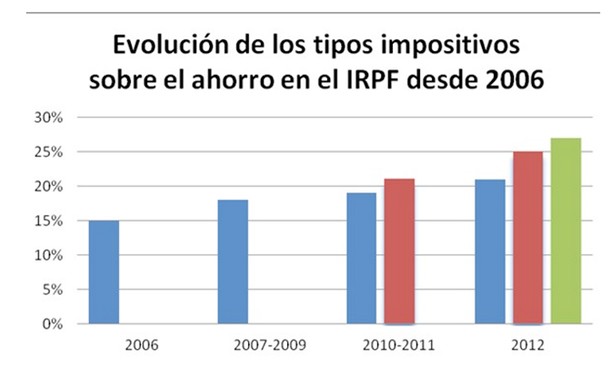 Pero no paramos de aprender. Comparemos las cifras del primer extracto -el de los dividendos de Roche- con las cifras del último extracto que les acabo de mostrar. Si se acuerdan, en el caso de Roche (2012), la Hacienda española me retuvo el 21%: [43.63 / (319.60 – 111.86)]. Sin embargo, un año antes, el Fisco sólo me retuvo el 19%: [20.37 / (126.16 – 18.92)]. Ahora entiendo, perfectamente, el gráfico que recogía Adriá Pérez Martí en su excelente artículo publicado en Libre Mercado en enero de 2012: