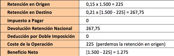 En virtud del convenio bilateral sólo pueden aplicarme como máximo un 15%, pero habiendo superado el enemigo la primera barricada -con esa retención del 35%- a ver quién es el listo que pierde su tiempo y paciencia reclamando un dinero a la Administración de un país extranjero. Para quien le interese, he podido encontrar por internet el documento que, parece ser, es el indicado para tramitar la reclamación del importe retenido de más.
