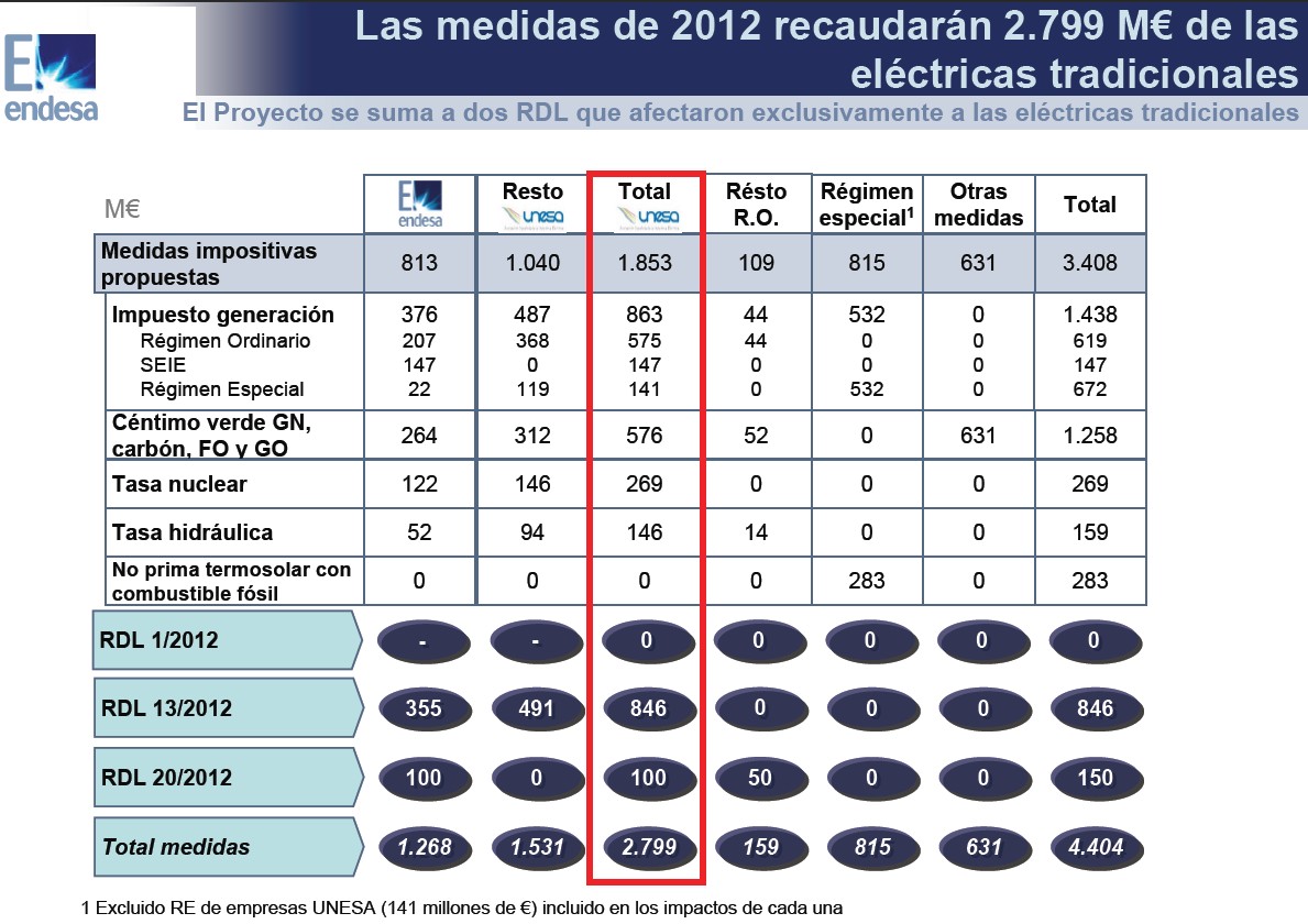 En total, dichas medidas pretenden recaudar 4.404 millones al año, de los que casi 2.800 millones (64%) serán aportados por las eléctricas tradicionales. Tan sólo 815 millones recaerán sobre el régimen especial, según los cálculos de Endesa.