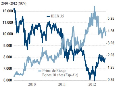 Ibex 35 y prima de riesgo española