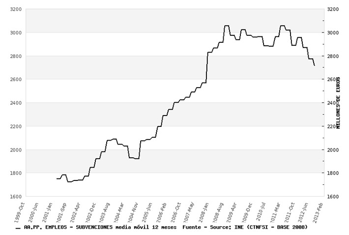 La partida de subvenciones, como se ve, y a pesar de que ha bajado un 5,9%, sigue siendo un 5,9% mayor que antes de la crisis.