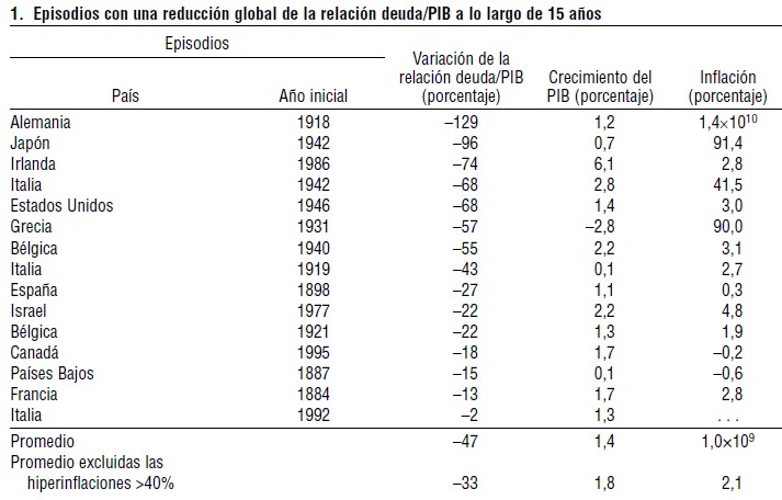 mantuvieron la tendencia alcista. Y las conclusiones son claras. Quitando a los países que sufrieron episodios de hiperinflación, el crecimiento medio de los que tomaron medidas contra la deuda fue del 1,8%.