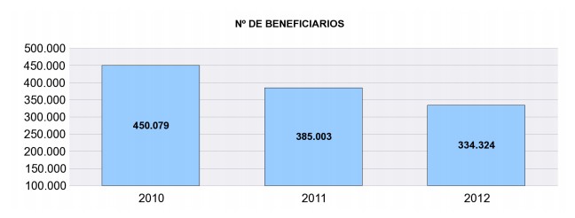 España cerró 2012 con un total de 4.848.723 parados oficiales registrados en el Inem, un aumento del 9,64% interanual, lo que equivale a 426.364 desempleados más que en diciembre de 2011. Asimismo, el número de beneficiarios alcanzó los 2.957.378 en diciembre, un 1% más a nivel interanual, mientras que el gasto medio mensual por persona (sin incluir el subsidio agrario de Andalucía y Extremadura) fue de 917,7 euros, 9,8 euros más que hace un año (el 1,1%).