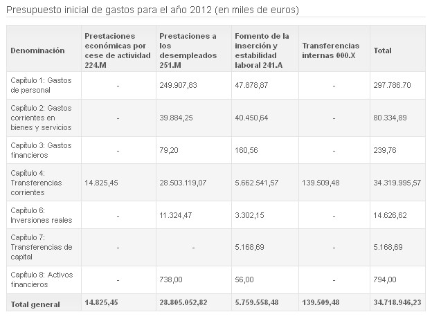 El Gobierno falló en sus previsiones a la hora de estimar el gasto que supondrían las prestaciones de desempleo el pasado año. En concreto, los Presupuestos Generales del Estado (PGE) para 2012 incluían una partida de 28.805 millones de euros para cubrir dicha asistencia, un 5,4% menos que lo presupuestado inicialmente para 2011 (1.637,17 millones menos). Sin embargo, la cuantía final ha sido superior.