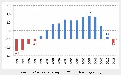 El sistema ya registró en 2011 su primer déficit (diferencia entre ingresos y gastos) desde finales de la década de los 90, equivalente al 0,24% del PIB, y todo apunta que en 2012 este desajuste se ha intensificado. Según avanzó el lunes el secretario de Estado de la Seguridad Social, Tomás Burgos, el sistema registró un déficit del 0,5% del PIB (unos 5.800 millones) el pasado ejercicio que, sumado al desequilibrio del Servicio Público de Empleo (antiguo Inem) y el Fondo de Garantía Salarial (Fogasa), podría alcanzar el 1% del PIB, algo más de 10.000 millones de euros.