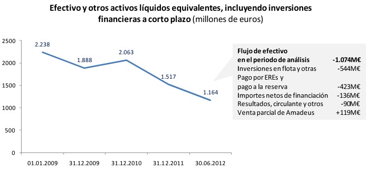 Por otro lado, las denuncias de que la caja de Iberia se ha empleado ya para pagar el déficit de pensiones es "falso", según la aerolínea. Desde 2009 hasta junio de 2012, dicha caja se ha destinado a comprar nuevos aviones (544 millones), a EREs (423 millones, sobre todo a prejubilaciones), al pago de deuda (136 millones) y a cubrir pérdidas (90 millones).