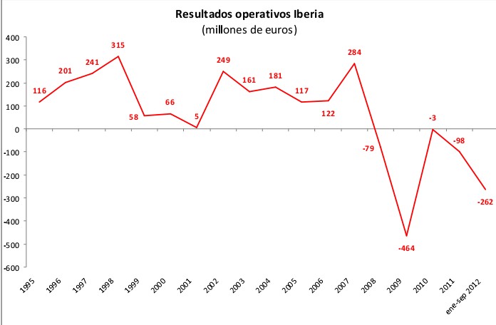 Según los sindicatos, a British. "Iberia tiene hoy menos rutas, menos aviones, ofrece menos destinos y transporta menos pasajeros que antes", lo cual no se debe a la crisis, alegan. Iberia, por su parte, recuerda que registra pérdidas desde 2008 y que en 2009, dos años antes de la fusión, tuvo los peores resultados de su historia reciente. Estos datos demuestran que, antes de la fusión, Iberia ya tenía "serios problemas estructurales y de competitividad" que, además, se han agravado por la crisis económica. "La situación de los mercados naturales de Iberia es mala y el mercado origen España es muy débil en estos momentos", insisten. "La compañía no puede cubrir con sus ingresos los altos costes de funcionamiento".
