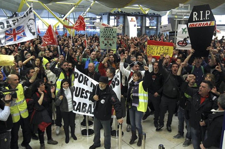 Los sindicatos protestan por el "desmantelamiento de Iberia" y la supuesta desaparición encubierta de la "joya de la corona" española.