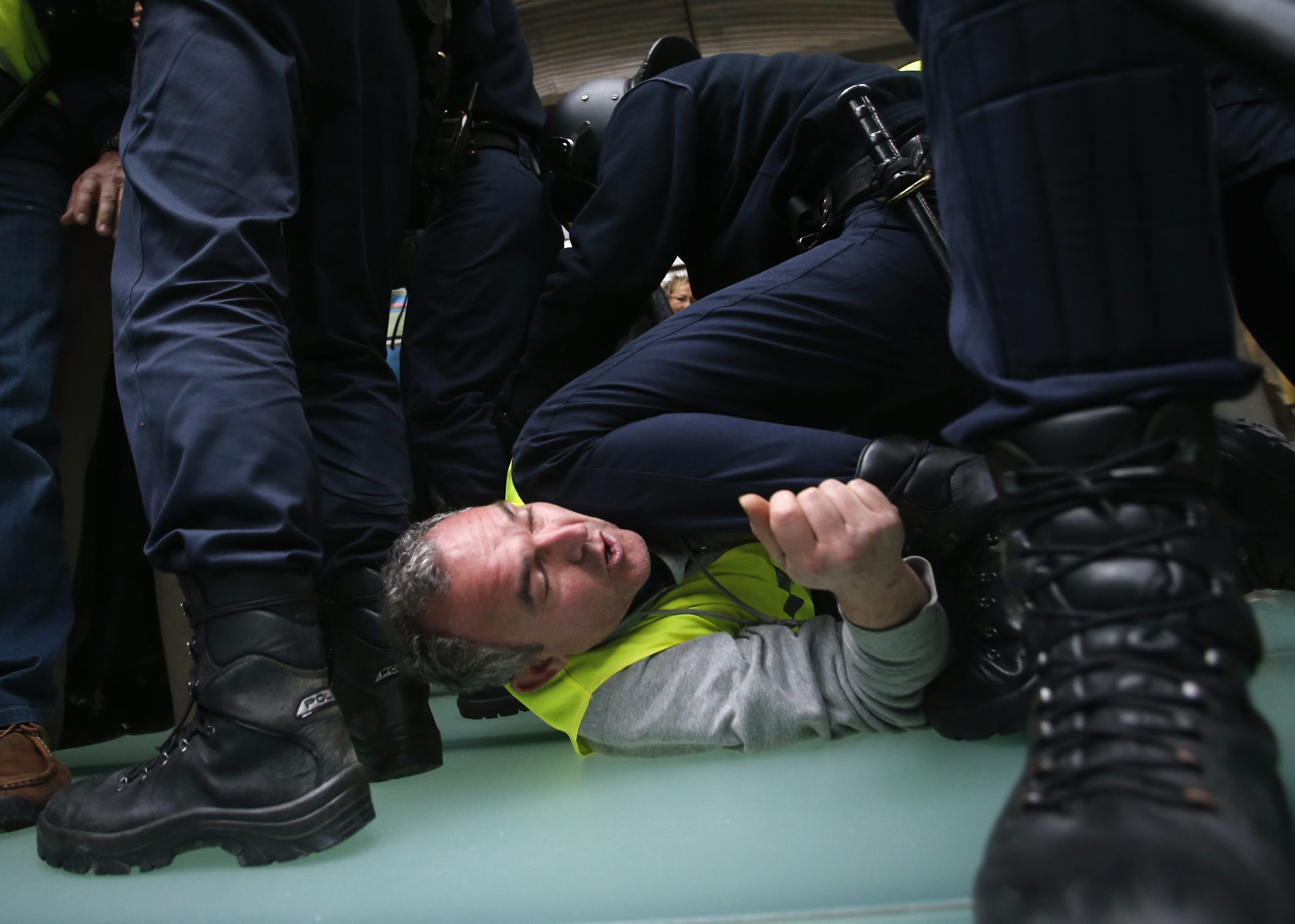 Algunos manifestantes han sido detenidos por los agentes tras saltarse el cordón policial.