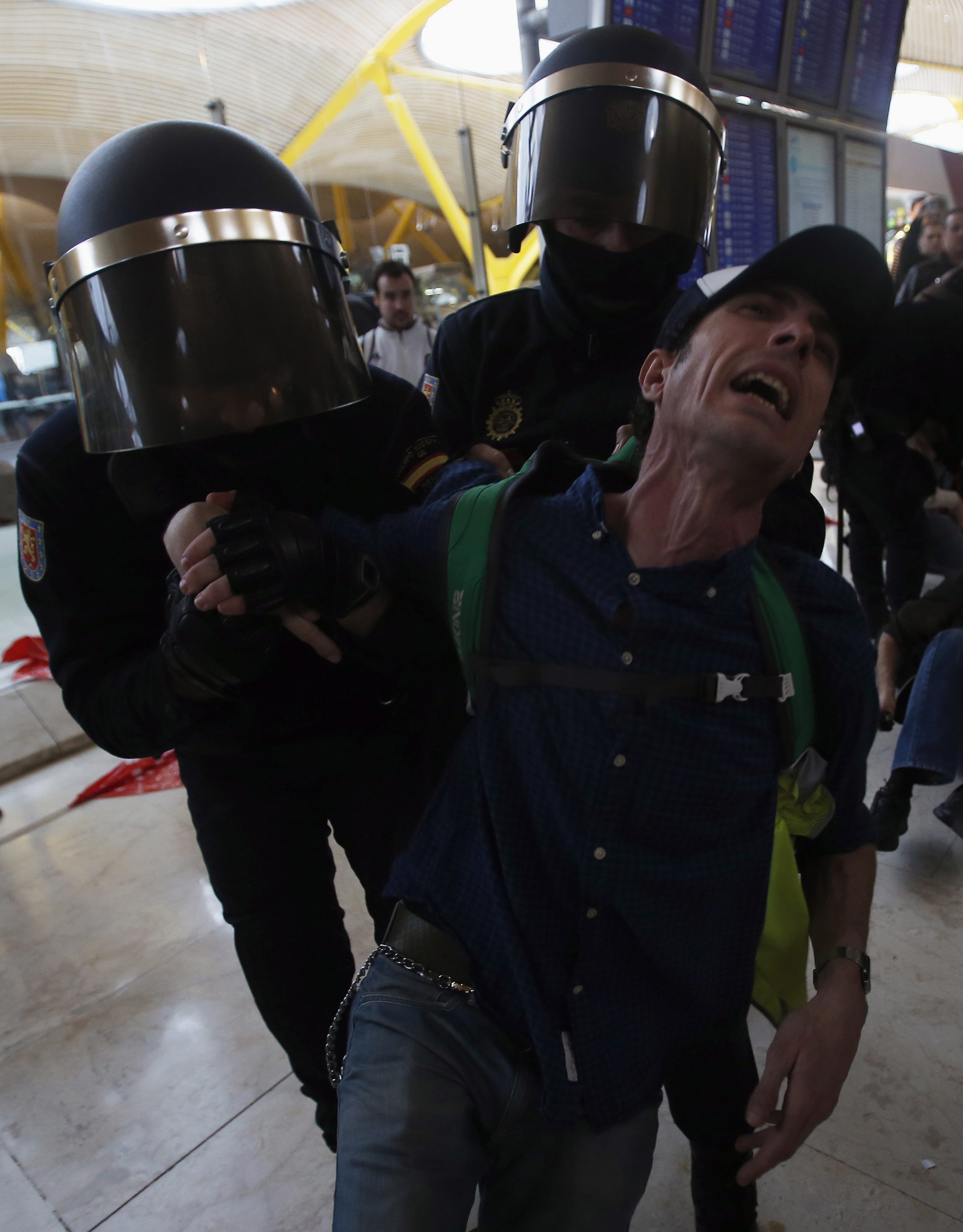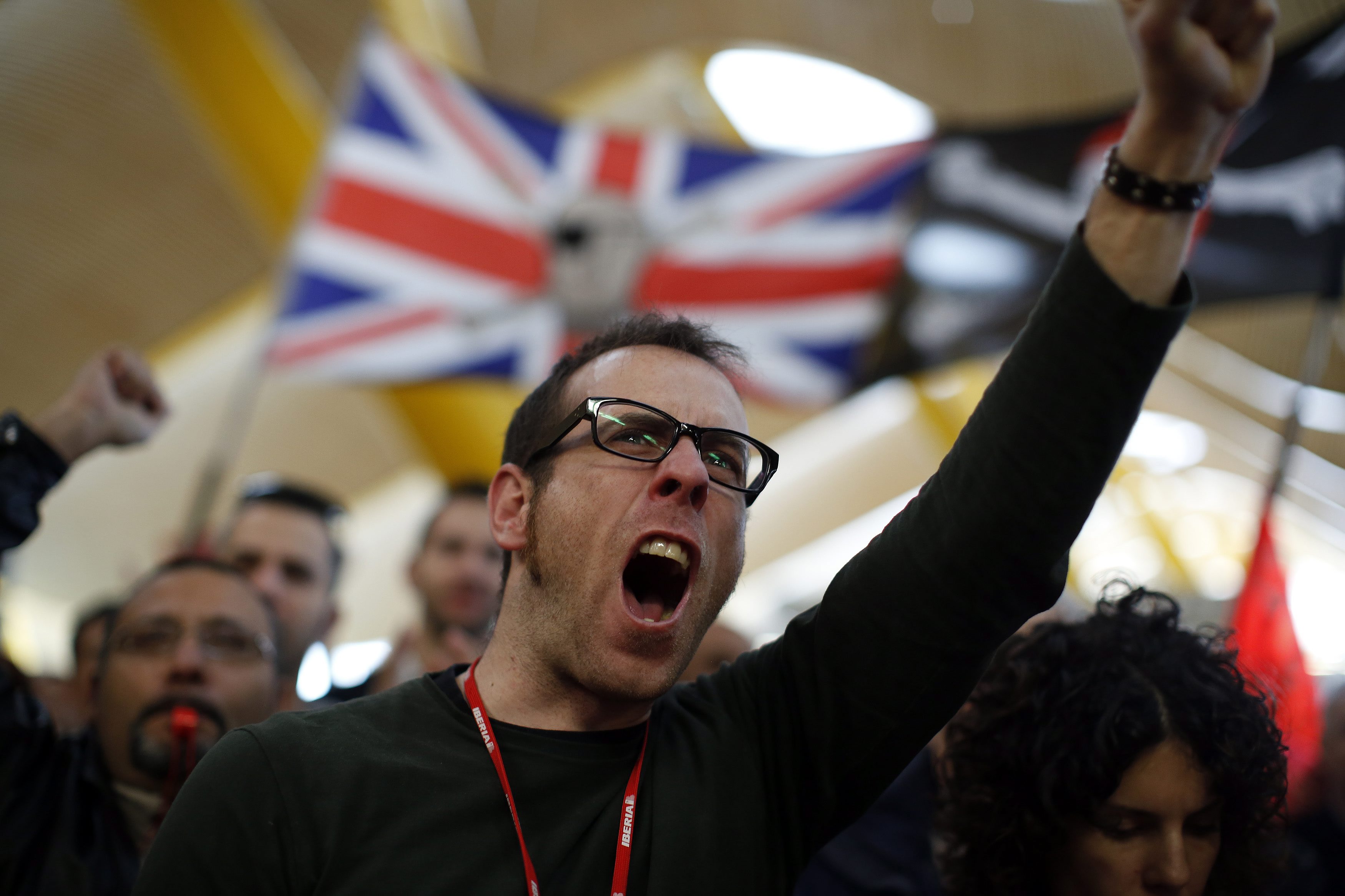 Un trabajador de Iberia protesta enérgicamente en la T4 de Barajas.