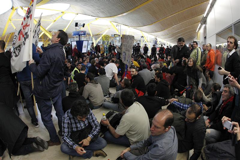 Los que iba a ser una manifestación fuera de la T4 se convirtió en una sentada en el interior de la terminal del aeropuerto madrileño.