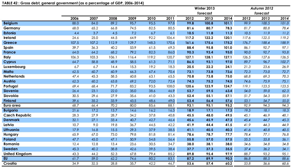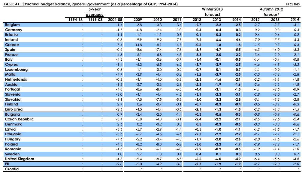 La Comisión Europea (CE) lanzó un jarro de agua fría tanto a las estimaciones económicas del Gobierno como, sobre todo, a su gestión presupuestaria. En sus previsiones del invierno, publicadas el pasado viernes, Bruselas mantiene que el PIB nacional caerá un 1,4% este año frente al pronóstico del -0,5% incluido en los Presupuestos Generales del Estado para 2013, mientras que el paro escalará hasta rozar el 27%. Así pues, España volverá a sufrir una dura recesión este ejercicio, según el Gobierno comunitario.