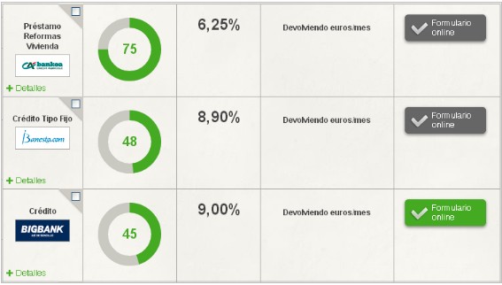 Haga click en la tabla para acceder a los mejores préstamos