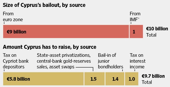 - Chipre aceptó y se acordaron las quitas anunciadas inicialmente del 6,7% sobre los depósitos inferiores a 100.000 euros y del 9,9% sobre los superiores.