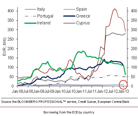 Préstamos del BCE a la banca de ciertos países