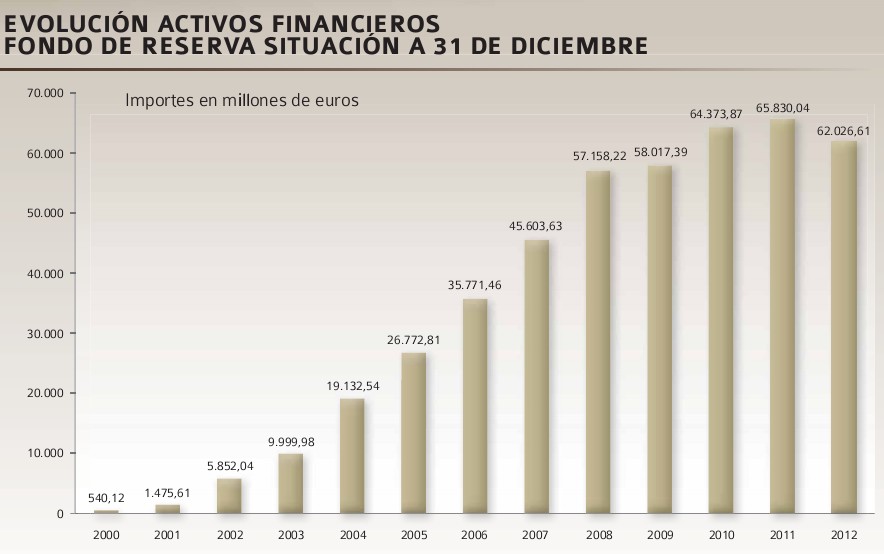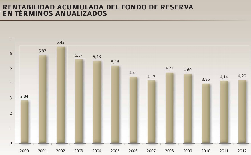La rentabilidad obtenida en 2012 (2.970 millones) permitió recuperar el 42% de los 7.003 millones de euros utilizados para garantizar el pago de las prestaciones el pasado año. Ésta es la razón por la que el importe del Fondo en activos financieros haya bajado desde los 65.830 millones de euros en 2011 a los poco más de 62.000 millones el pasado año.