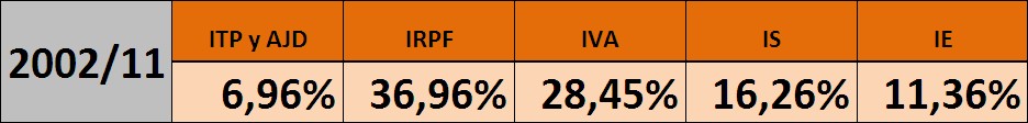 En estos momentos, es especialmente complicado hacer un análisis preciso de cómo se reparten los ingresos tributarios. La crisis y las últimas medidas del Gobierno de Mariano Rajoy han cambiado por completo lo que se recauda por cada aspecto. No es sencillo saber cómo se comportarían los ingresos en un año normal. En cualquier caso, tomando en consideración lo ocurrido entre 2002 y 2011, podemos aproximarnos a lo que sería un año normal en cuanto a recaudación.