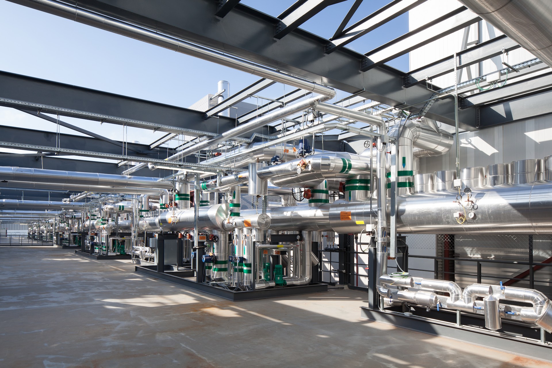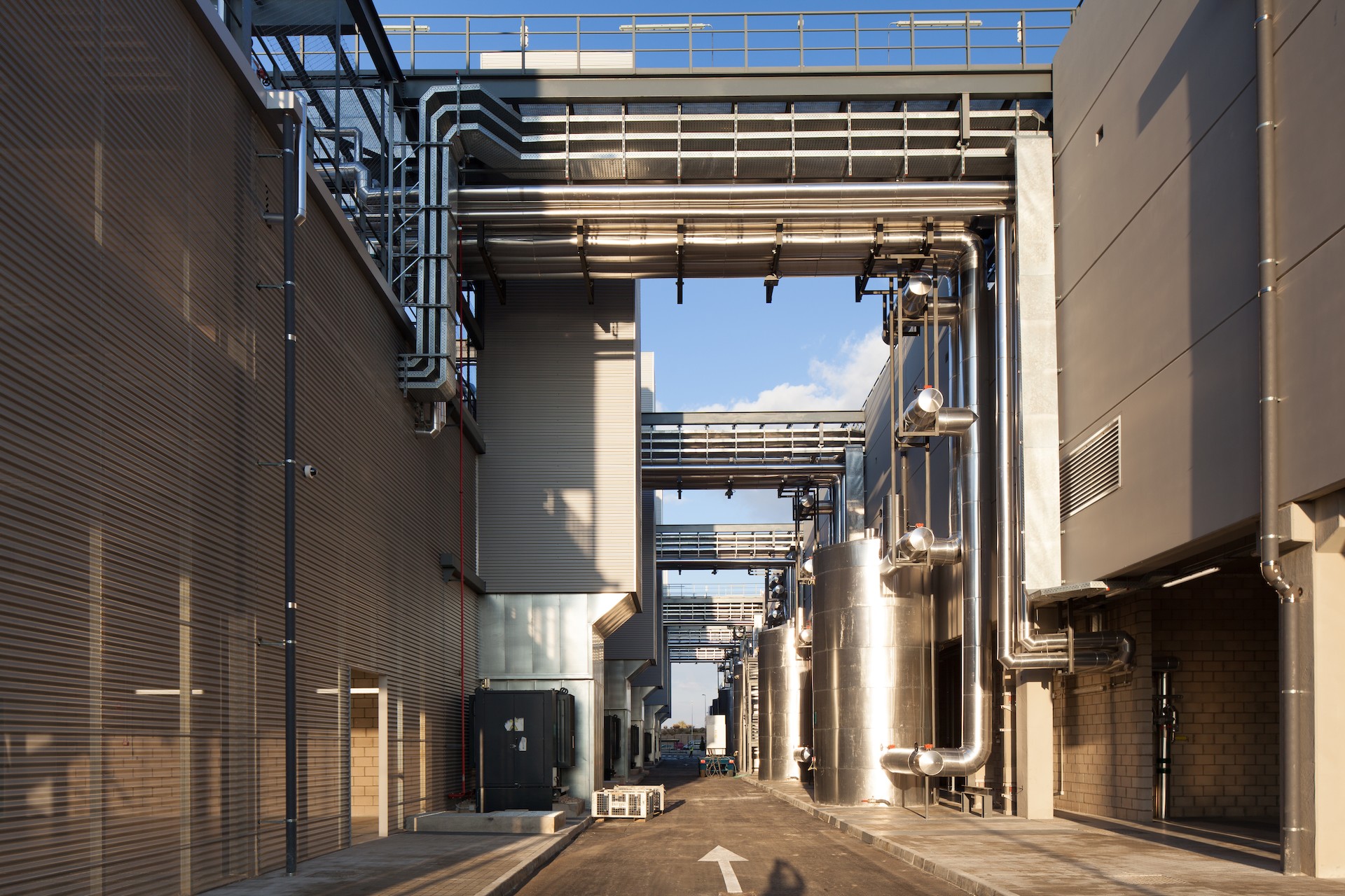 'Alcalá Data Center' dispone de 12 depósitos y tuberías aislantes con 1.000.000 de litros de agua constantemente enfriada a 10º equivalente a 200 piscinas, lo que garantiza una climatización continua de los servidores en caso de fallo de suministro eléctrico.