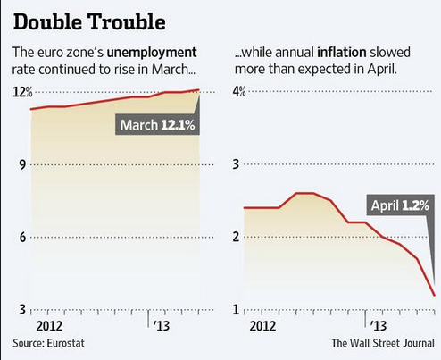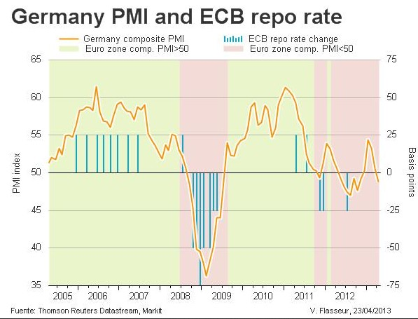A ello se suma el hecho de que la inflación se mantiene en 1,2%, en mínimos de hace tres años. Todo ello configuraba el contexto idóneo para una nueva bajada de tipos, aunque ésta no sira en ningún caso para impulsar el crecimiento o reactivar el crédito en los países en problemas.