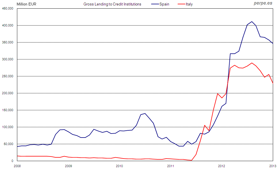 Financiación del BCE a la banca de España e Italia (Fuente gráfica: Perpe.es)