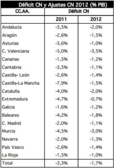 No es casualidad que Galicia hizo los deberes cumpliendo los objetivos fijados al pasar del 1,6% en 2011 al 1,2% en 2012, como Extremadura, o Cantabria que redujo 2,4 puntos de déficit hasta el 1,1% en 2012, también cumpliendo los límites marcados; o que Aragón que logró cumplir el objetivo marcado del 1,5% de déficit al reducir 1,1 puntos su desfase en 2012.