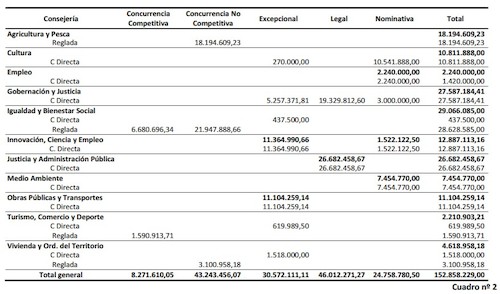 De todas ellas, sumando las concedidas en régimen de concurrencia no competitiva con las excepcionales se tiene el resultante de más de 73 millones concedidos discrecionalmente sin atender a criterio objetivo previo alguno.