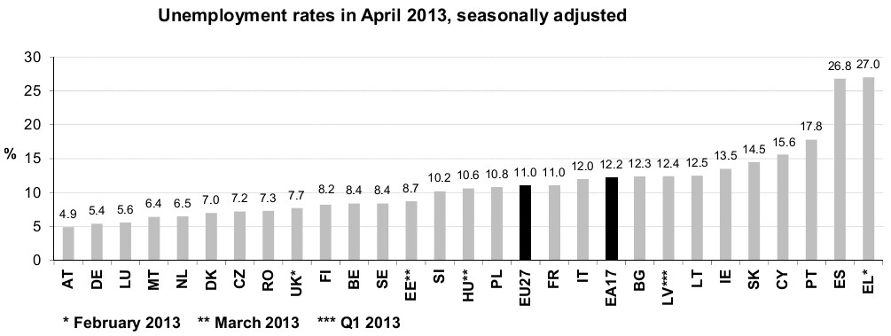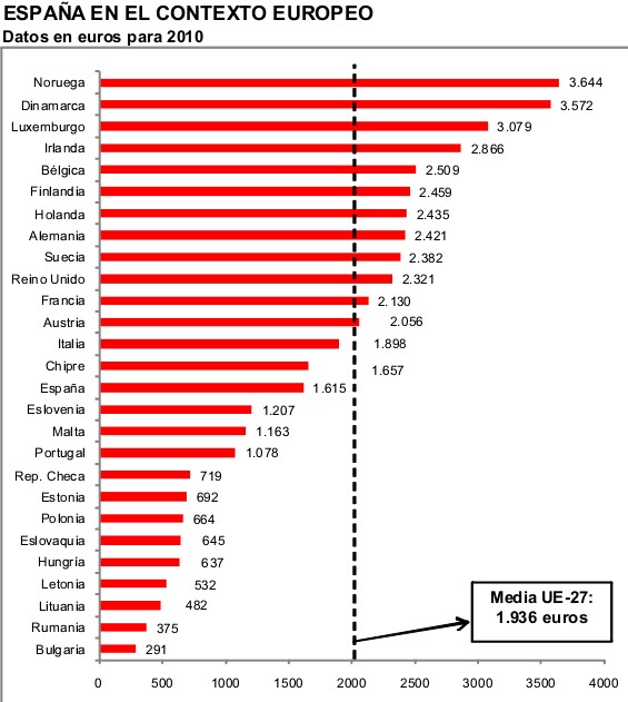 En España, el salario medio es de 1.615 euros brutos al mes y el paro supera el 27%. Es decir, en los países sin salario mínimo, los trabajadores cobran un 65% más de media que los españoles (1.045 euros extra al mes), y registran una tasa media de paro de apenas el 7,4% (un 73% inferior a la española).