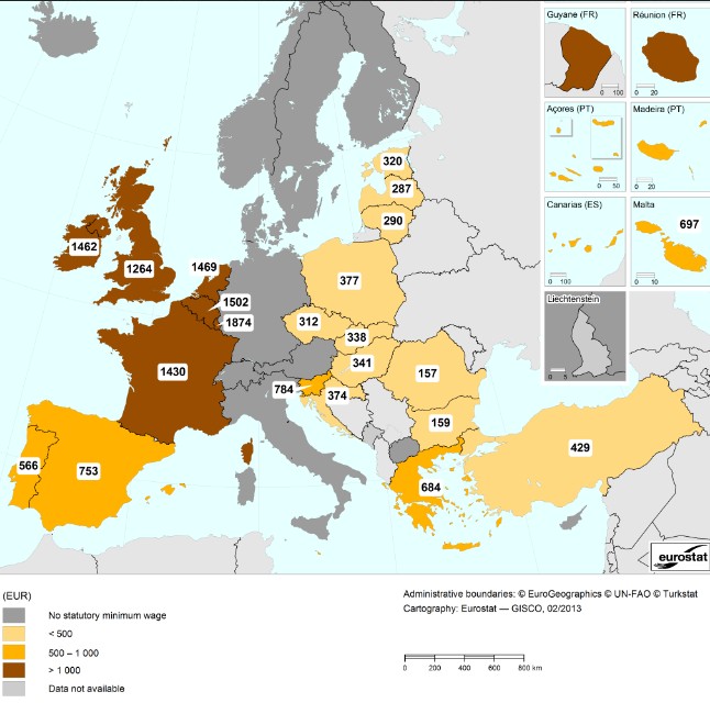 En concreto, un total de diez países del Viejo Continente carecen de SMI y, además de contar con un salario medio mucho más alto que el español, gozan de una tasa de paro muy inferior a la nacional: en Suiza, el sueldo medio ronda los 4.500 euros al mes, mientras que el paro apenas ronda el 3,2%; en Noruega, 3.644 euros al mes y 3,7% de paro; Dinamarca, 3.572 euros y tasa del 7%; Finlandia: 2.459 euros, 8,2%; Alemania: 2.421 al mes y 5,4% de desempleo; Suecia: 2.382 euros y 8,4%; Austria: 2.056 euros y 4,9%; Islandia, 2.000 euros al mes y 5,6%; Italia, 1.898 euros y 12%; y Chipre, con 1.657 euros al mes y un paro del 15,6%.