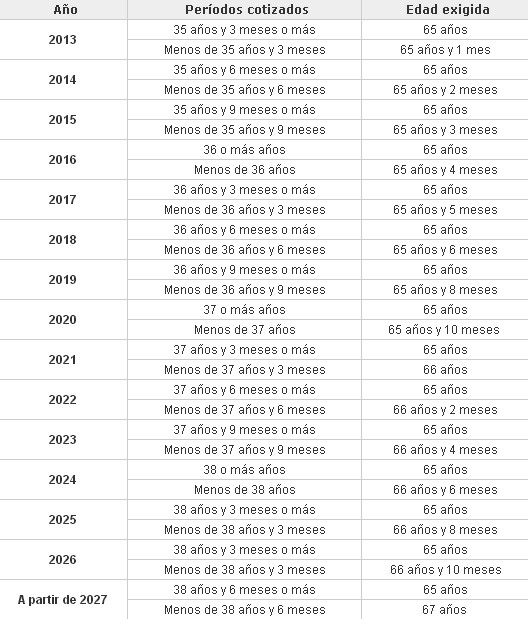 - Más edad: en 2027, nos jubilaremos con 67 años como mínimo. Habrá una opción para retirarse a los 65, pero habrá que tener cotizados 38 años y medio.