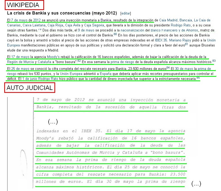 Y añade: "La desproporción y desconexión entre lo que es objeto del proceso y lo argumentado" por el juez que, recuerda, es en "gran medida copia de la página web Wikipedia", es de "tal naturaleza y magnitud y constituye tan desacertado proceder, que ha dado lugar a una causa en la que lo menos relevante es el concreto hecho denunciado".