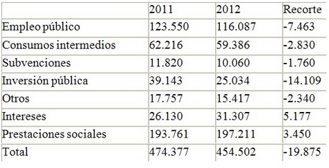 Sin embargo, un análisis más detallado de las partidas muestra que, lejos de reducir la estructura del Estado, casi el 70% de dichos recortes presupuestarios (unos 14.000 millones) consistió, básicamente, en paralizar y retrasar obra pública (inversión), el tijeretazo más fácil e inefectivo.