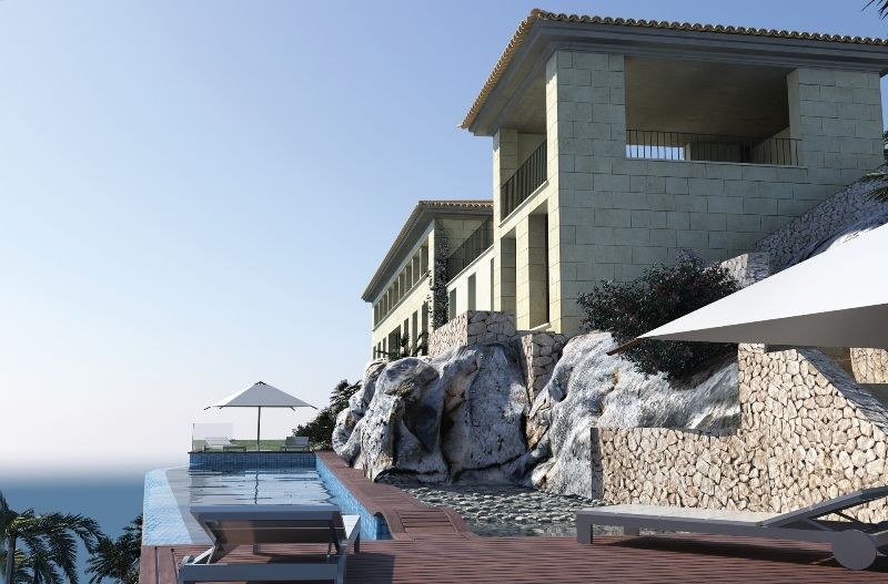 La superficie habitable se divide en grandes zonas de estar con espectaculares vistas al mar, cocinas completamente equipadas, 7 dormitorios y 6 cuartos de baños.