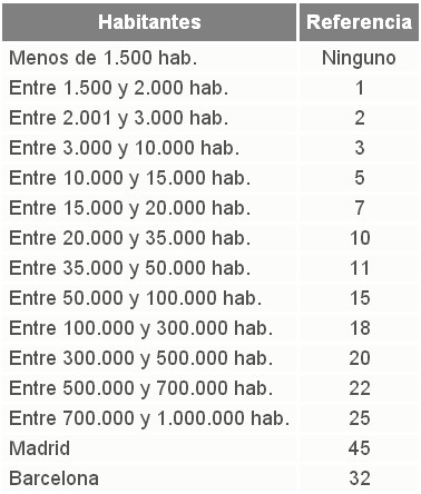 - Retribución: desde que se comenzó a hablar de esta reforma, ha sido uno de los temas a los que el Gobierno ha dado más publicidad. Limitará los sueldos de los alcaldes y concejales, en función del tamaño del municipio. Por ejemplo, los alcaldes de las grandes ciudades no podrán cobrar más que un secretario de Estado. También pone un techo al número de personal eventual (los famosos asesores) que podrá tener un ayuntamiento. Por ejemplo, en Madrid y Barcelona no podrán pasar de 45 y 32 respectivamente. Las cifras definitivas están en los dos siguientes cuadros: