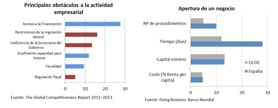 España es un país difícil y complejo para abrir nuevas empresas y desarrollar una actividad productiva, lo cual supone un importante lastre, no sólo para la competitividad económica del país, sino también para su potencial crecimiento y creación de empleo. Según el informe Doing Business 2013, en donde el Banco Mundial mide la facilidad para hacer negocios en un total de 185 economías, España no ha dejado de perder posiciones durante la presente crisis.
