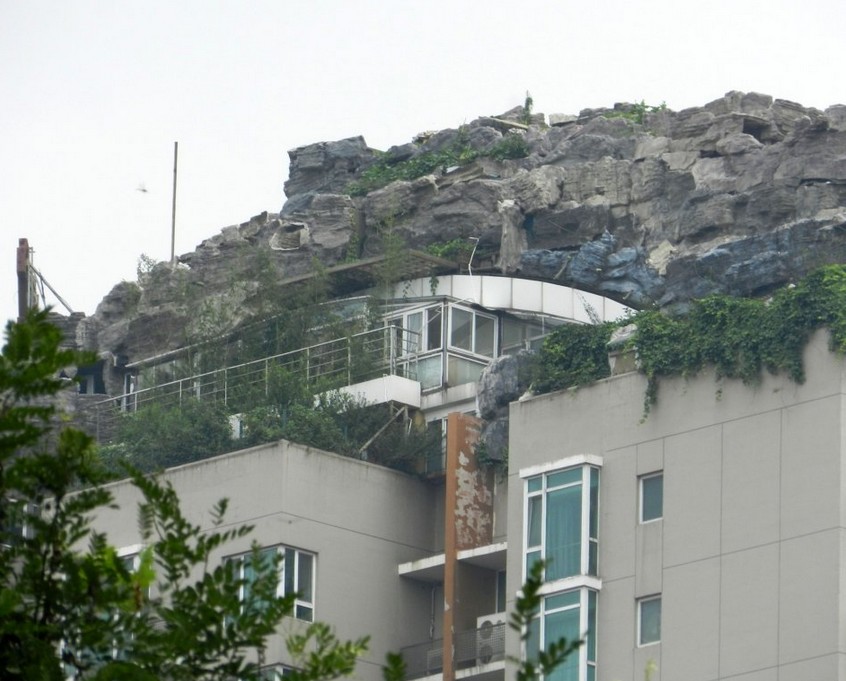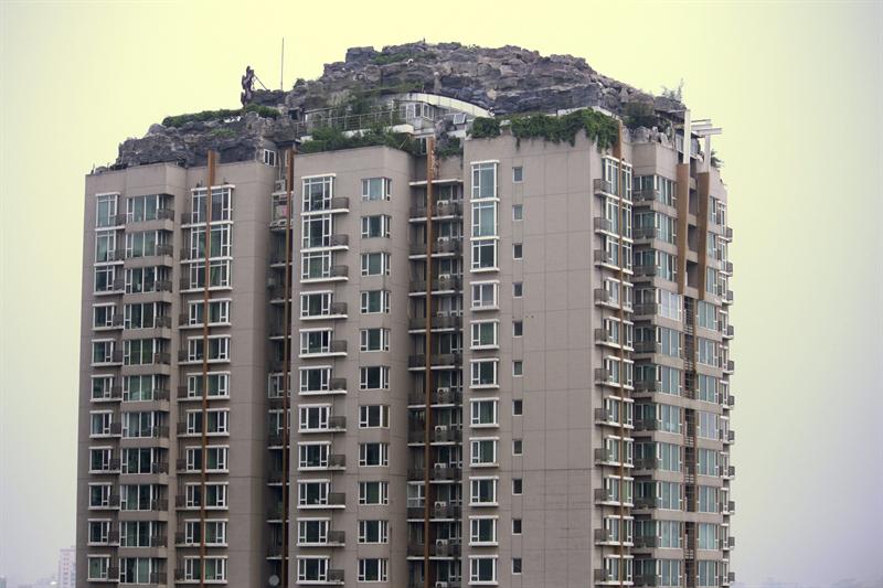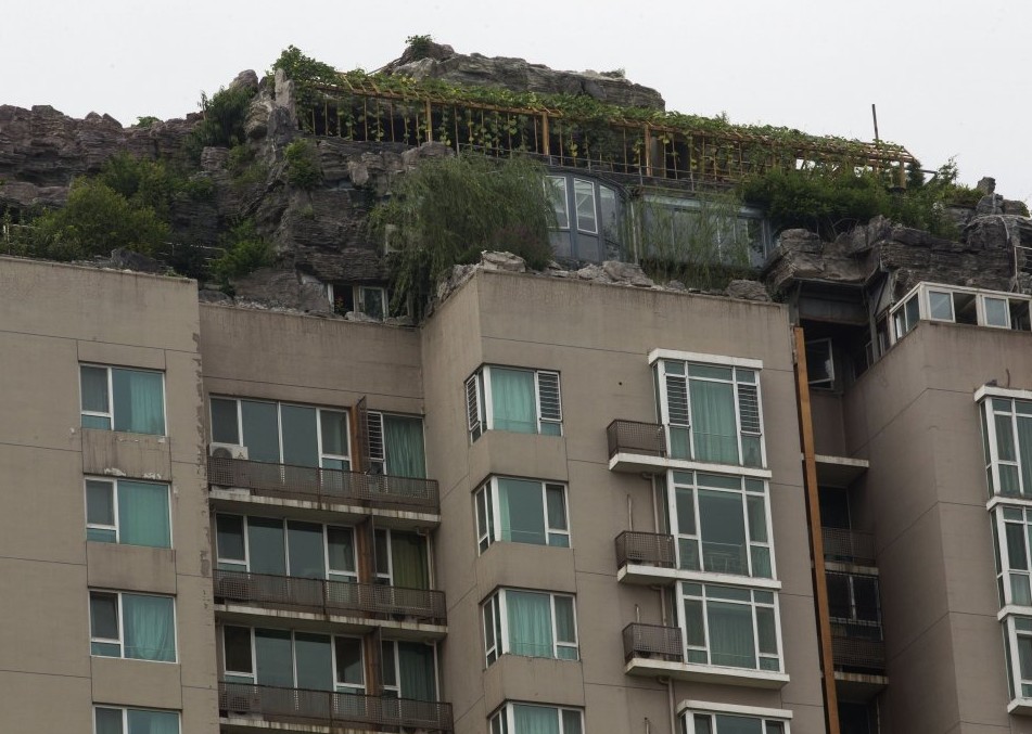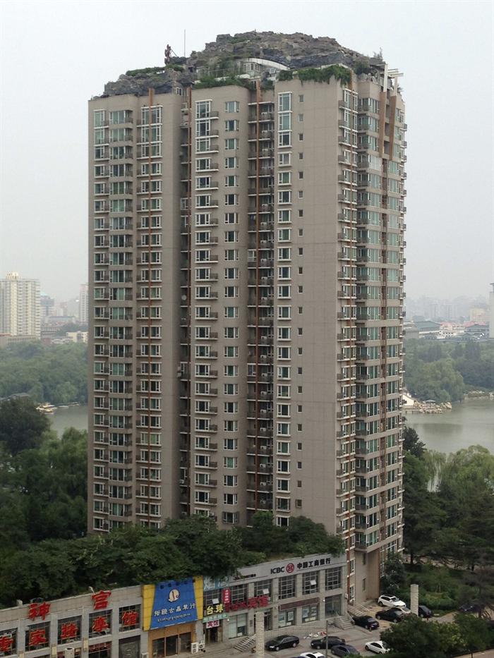 Las autoridades de la capital china ya han informado que hay que demoler esta peculiar villa, con rocas y árboles incluidos, que el profesor pequinés construyó en un rascacielos de 26 plantas.