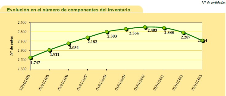 Por el momento, según los últimos datos disponibles, puesto que la reducción neta efectiva asciende a 248, el número de entes autonómicos apenas ha bajado un 10,5% con respecto a julio de 2010. Pero la trampa aquí radica en observar la evolución del sector público autonómico desde 2010, cuando el volumen de entidades alcanzó su máximo histórico (más de 2.400 a principios de ese año).