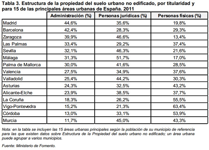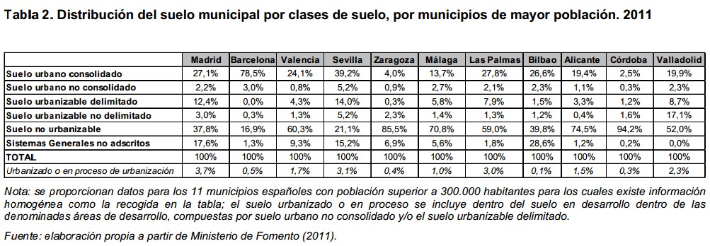 Como consecuencia, la intervención pública encarece el precio del suelo -y de la vivienda- de forma artificial, ya que restringe la oferta. El suelo no urbanizable en la mayoría de las principales ciudades de España alcanza porcentajes superiores al 60%, siendo el suelo urbanizable delimitado inferior al 10%, y en muchos casos no supera el 8%.