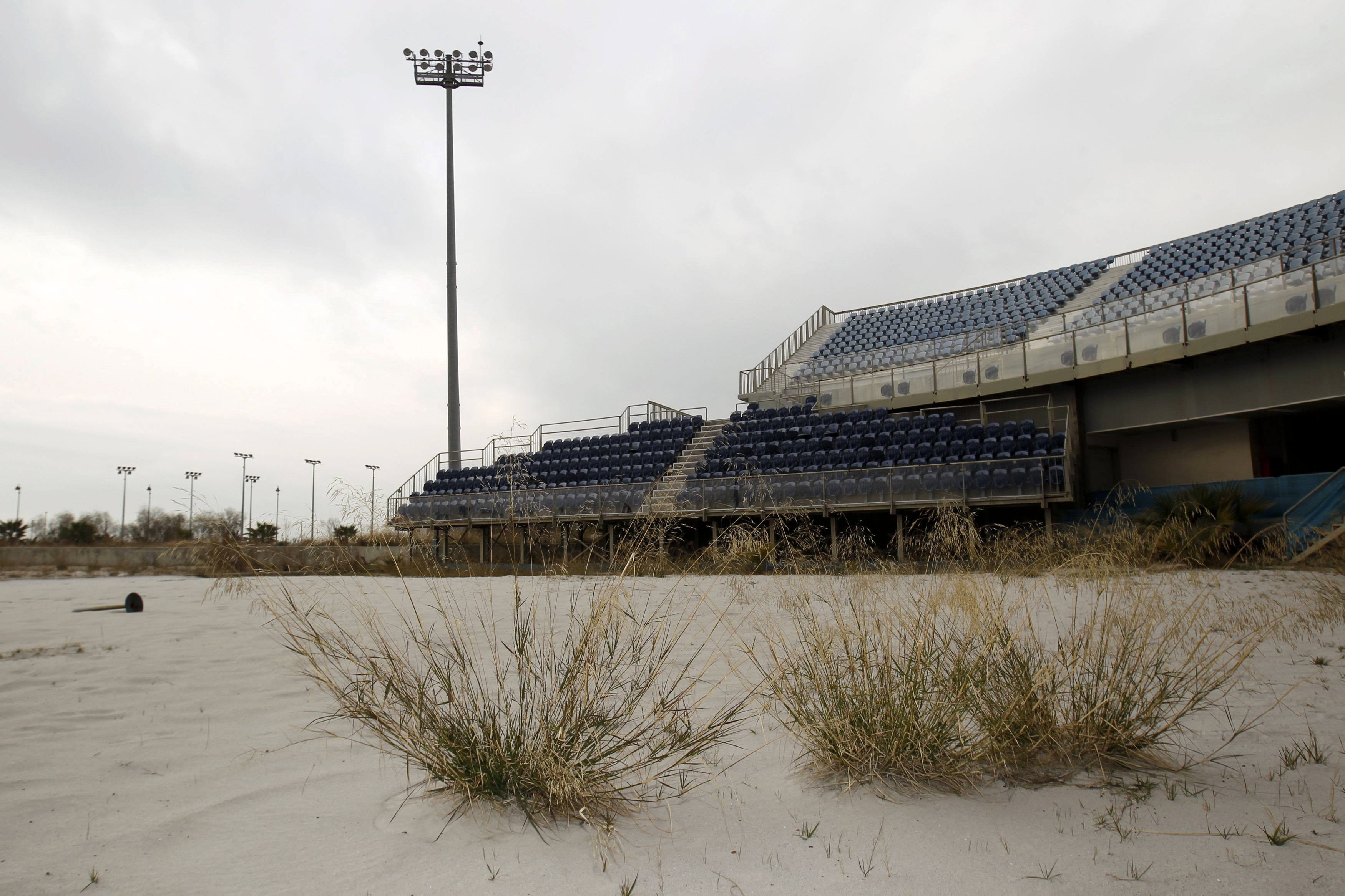 Atenas celebró los JJOO en 2004. Aunque el Estadio Olímpico, la Villa Olímpica y algunos otros pequeños estadios encontraron inquilinos, otras muchas instalaciones quedaron en el más absoluto olvido. Entre otros, destaca el centro acuático, el campo de voleibol playa, el estanque construido a las afueras del Estado Olímpico, el campo de Hockey y otras instalaciones deportivas que no han vuelto a utilizarse desde entonces.
