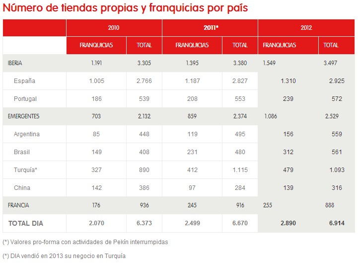 -Modelo de franquicia: en 1989 DIA lanza el modelo de franquicia. La adaptabilidad del modelo de franquicia y la cercanía del franquiciado con los clientes facilitan un servicio personalizado. Actualmente, más del 35% de la red de tiendas de DIA son franquicias, lo que supone alrededor de unos 2.400 establecimientos en los seis países en los que opera.