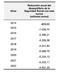El Gobierno ha presentado la siguiente tabla. Son sus cálculos de cuánto se ahorrarán con la reforma. Van de los 809 millones en 2014, el primer año de aplicación, a los 4.931 millones en 2022. En total, hablamos de 33.000 millones de euros en la próxima década. Todo el documento presentado por Empleo habla de "ahorro", pero esto