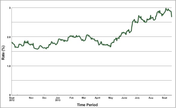 4. Por si fuera poco, la rentabilidad de la deuda pública de EEUU a 10 años ha registrado un fuerte repunte desde el pasado mayo, coincidiendo con el debate sobre la retirada paulatina de los estímulos, al pasar del 1,7% a casi el 3%. El encarecimiento de la financiación para el Estado se traduce también en unas mayores tasas de interés para las familias y las empresas, y el objetivo número uno de la FED es mantener los tipos bajos a toda costa. De ahí, la rebaja de tipos hasta mínimos históricos y la compra masiva de activos (la FED compra, directamente, una parte muy sustancial de las emisiones de deuda del Tesoro). Bernanke teme que la reducción de dichas compras se traduzca en una mayor rentabilidad de los bonos.